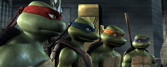 Já em relação à própria produção, acho seguro dizer que a primeira impressão ao saber que se trataria de um longa todo em CGI foi estranheza. Lembro-me claramente de opiniões divergentes em relação ao que realmente pensar a respeito, se funcionaria ou não. Com teasers e imagens saindo meses antes do lançamento oficial nos cinemas, as críticas pairavam principalmente no design dos personagens, desde as próprias Tartarugas aos humanos. O julgamento revolvia-se na questão de figuras excessivamente caricatas, embora a texturização fosse deveras adequada.