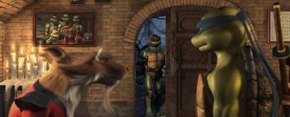 O clima de TMNT é sombrio. Mesmo com o CGI dando uma face obviamente mais cartunesca aos personagens, o longa está longe de ser infantiloide. São excelentes e empolgantes cenas de batalha, auxiliadas por incisões humorísticas cuidadosas em meio àquela que é a mais adulta das adaptações. Até certo ponto na projeção, atmosfera é de abandono. E o plot é apenas um pano de fundo para ilustrar o que é realmente importante ali: as relações das Tartarugas entre si, seus conflitos por serem excluídos e heróis que caíram no entardecer de seu passado outrora glorioso, e como eles estão lidando com o fato de, agora, serem adultos. Maturidade, algo que sempre falta às pessoas, é um dos temas centrais. E todos esses tumultos geram uma das melhores cenas feitas até hoje para a franquia: o combate entre Leonardo e Rafael, repleto de fúria, destreza marcial e tensão.