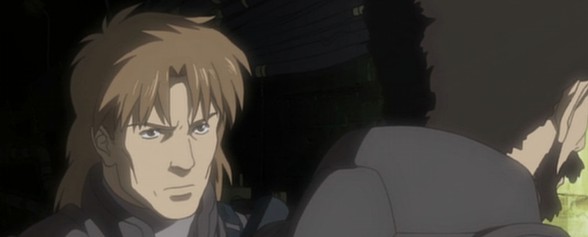 Como outro agente de corpo biônico, temos o ranger Batou. Com olhos artificiais e sem pupilas, Batou desafia o nosso primeiro senso quando olhamos para outro ser humano… em seus olhos não vemos sua alma, como assim disseram muitos famosos poetas e escritores, mas vemos uma máquina fria, vazia e que, por incrível que pareça, é um personagem mais complexo que a Major! Introspectivo e nem sempre falando sobre as suas percepções da vida, Batou demonstra em suas ações e em seu relacionamento platônico com a Major como é mais humano do que demonstra. Mas isso não tem sentido: ele é humano, não é? Exato, só que quando a gente discute humanidade num mundo muito mais próximo das máquinas, a discussão fica muito mais legal… Isso tudo fica mais claro no segundo filme da série, Innocence, cuja análise ainda deverá ser feita no futuro aqui no Ao Sugo.