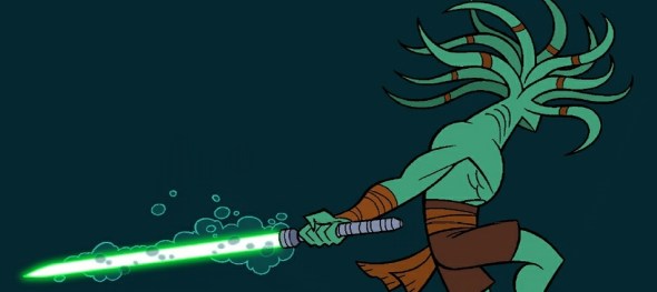 Apesar de não ser muito afeito aos eventos narrados no período da República, ou seja, dos três primeiros filmes, a animação de Tartakovzky merece todo o meu e o seu respeito. Hoje encontrada em DVDs (facilitando e muito a vida de quem perdeu a sequência dos episódios quando foram exibidos na TV), é certamente uma animação indispensável para os fãs de Star Wars. Jogue fora aquele Droids, Caravana da Coragem e Star Wars Holiday Special, mas comprem esse “Clone Wars”. A série rendeu spin-offs em quadrinhos da Dark Horse Comics, todos também muito interessantes e que valem a pena. Que a Força esteja com vocês, Tartakovzky, Rudish e Wills.