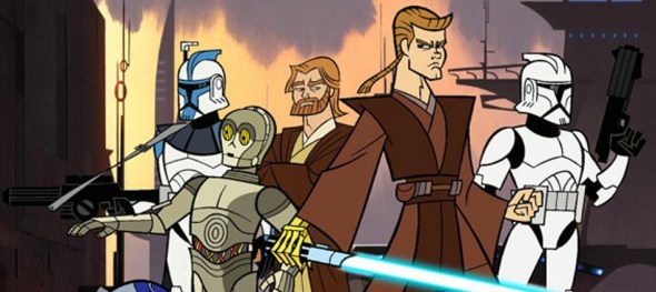 Clone Wars (2003-2005) é diferente. Bem diferente. Para atender à incrível demanda do merchandising de brinquedos, Lucas cogitou a possibilidade de fazer uma animação spin-off voltada para os mais jovens, tarefa que foi imediatamente colocada nas mãos do Cartoon Network, famoso canal de animação da Time Warner.