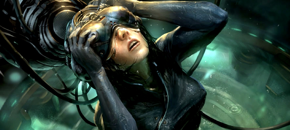 Ainda ouvindo ao longe as passadas do Pacheco faço o meu checkup matinal, minha parte predileta. Estou usando uma segunda pele encoberta de escamas, controlada por uma camada semiorgânica que eu gerencio pelo Simstim. Este dispositivo, aparente em minha nuca e com filamentos que passam por entre os fios do meu cabelo curto lêem minhas ondas cerebrais e por sua vez mandam comandos para o que quer que eu queira controlar, como a SnakeSkin, minha roupa de escamas. Todos os aparelhos controláveis pelo Simstim tem o seu tempo de aprendizado: você aprende a sentir a roupa, a interagir com a tela-filme (mouses e cursores há muio fazem parte do passado), aprende a ordenar a cavalgada do bigdog e por mais que tudo isso seja apenas carbono, silício, e policarbonato esta interface muda a forma como você vê o mundo: eu percebo as coisas ao meu redor como extensão de mim mesma, ainda que o aparelho apenas leia pensamentos, sem transmitir sensações de volta ao meu cérebro. Sinto que a roupa está quase me sufocando de calor, com suas escamas hermeticamente fechadas, e então eu desejo sentir frio; logo todas as escamas se abrem. O ar gelado entra pelas fissuras e é como cair num lago gelado: o Simstim lê meu pensamento e fecha rapidamente as escamas, fazendo aquele som agradável de plástico bolha. Encaixo a mochila nos arreios que envolvem meu corpo, olho para frente e dou o primeiro passo.