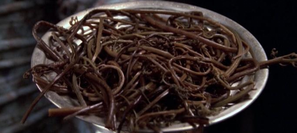 Para quem não conhece, Gagh é o prato Klingon mais famoso fora do Império Klingon, consistindo em larvas (oras, o próprio Gagh) originárias de Q’onos e hoje, felizmente, cultivada em vários postos avançados e planetas da Galáxia. Dizem os especialistas que Gagh bom é sempre aquele servido fresco – vivo, lógico – capaz de causar um exuberante feixe de sensações em qualquer garganta conhecida. O Esfolador ainda serve pratos especiais para os Gagh mais conhecidos, como o Torgud Gagh (aquela belezura que se contorce), Meshta Gagh (aquele que pula), Filden Gagh (aquele que se remexe), Bithool Gagh (aquele que tem pernas) e o Wistan Gagh (servido em sangue de besta Targ).